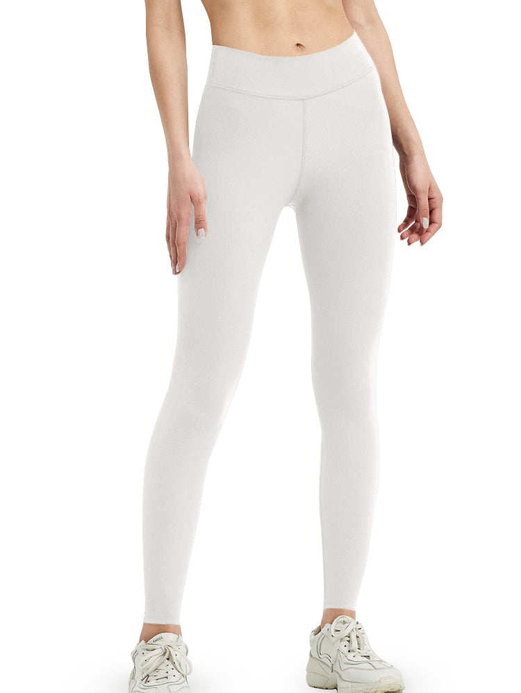 Blosira High-Waisted Ribbed Cuff 7/8 Yoga Leggings WHITE